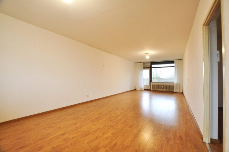 The spacious living room is a nice bright room with a large window on either side, and the walls are in a white color scheme. From here you can also enter the balcony by the way.