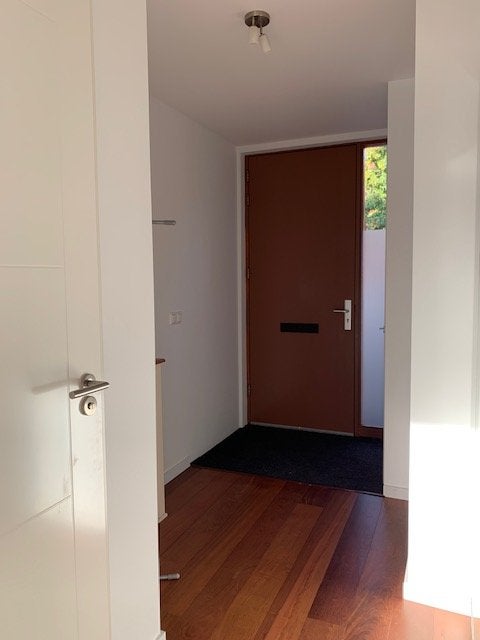 Layout: front garden, entrance hall with checkroom, meter cupboard, neat toilet (fully tiled) with fountain, very cozy living / dining room with storage / cupboard and access to the very sunny backyard (SW) of approx. 1150x530 with back and wooden shed (incl. electricity), front modern kitchen in L-shape with composite worktop, carousel, stainless steel extractor and various appliances (brand Siemens) including refrigerator, freezer, dishwasher, 4 burner induction hob and microwave. The first floor has a beautiful floor and from the kitchen you have access to the front garden.