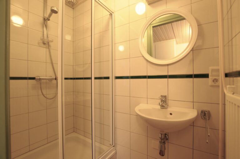 Attached you will find the closed kitchen which has a dishwasher, refrigerator, 4-burner electric stove with hood and various storage options. At the rear of the kitchen through a door you can reach the utility room, where the toilet, washer and dryer are located. On the left side you will also find the shower with a sink.