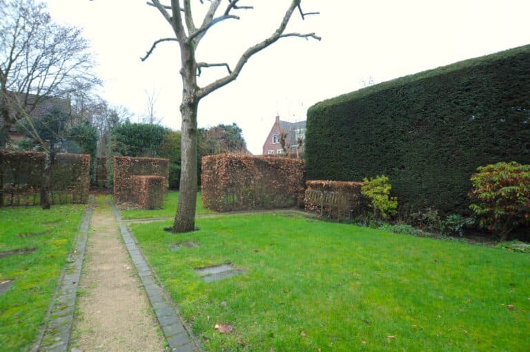 Beautiful well maintained garden facing west, possessing various flower beds and vegetation. The (large) garden maintenance at the edge of the garden + the high vegetation will be provided by the landlord, however, the (small) garden maintenance as in lawn mowing and hedge trimming should be performed by the tenant.