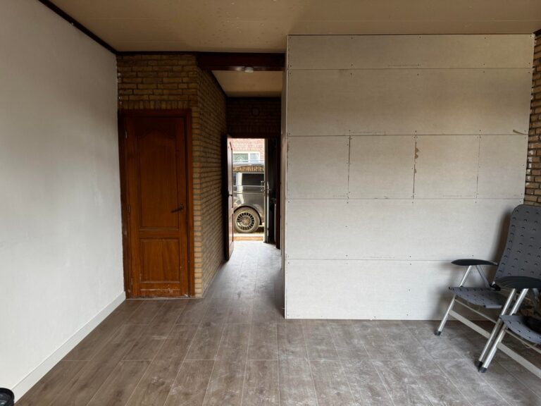 From the living room you enter the kitchen and shared garden with shed. The kitchen is equipped with a new kitchen unit including a new oven with hob and extractor hood. The existing dishwasher, refrigerator, freezer, and washing machine can still be used for a while. From the kitchen you enter the adjacent utility room (with washing machine connection) and bathroom. The bathroom has a shower and toilet.