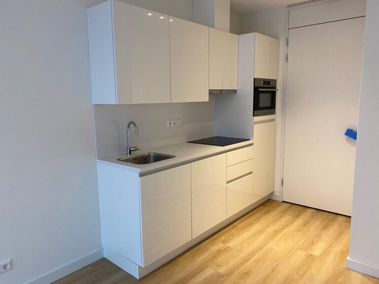 On the ground floor of the new complex ''DE RUYTER'' you will find this unfurnished 2-room (1 bedroom) apartment on the back side of building B with luxury kitchen, bathroom and little garden.
