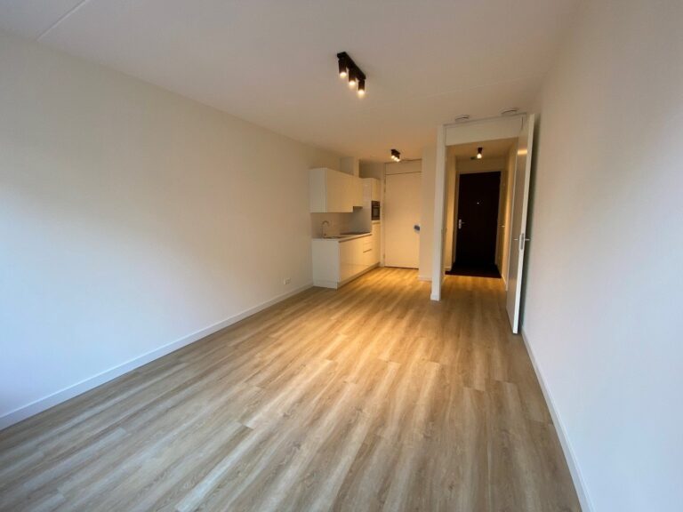 Entrance at the side of the building with bells and mailboxes. Entrance on the ground floor. Entrance hall with access to the various rooms. Living room with luxurious open kitchen with dishwasher, refrigerator, induction hob, extractor and combi-microwave. Luxury bathroom with shower, sink, toilet, radiator and washing machine connection. From the hallway access to the bedroom.