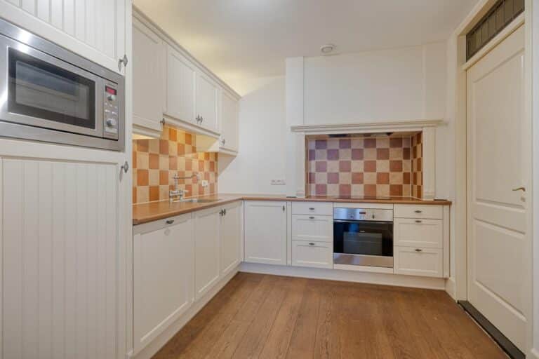 Half open kitchen which is provided with a dishwasher, microwave, electric cooker and storage.