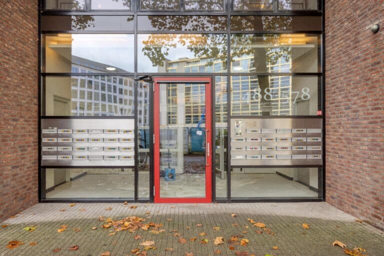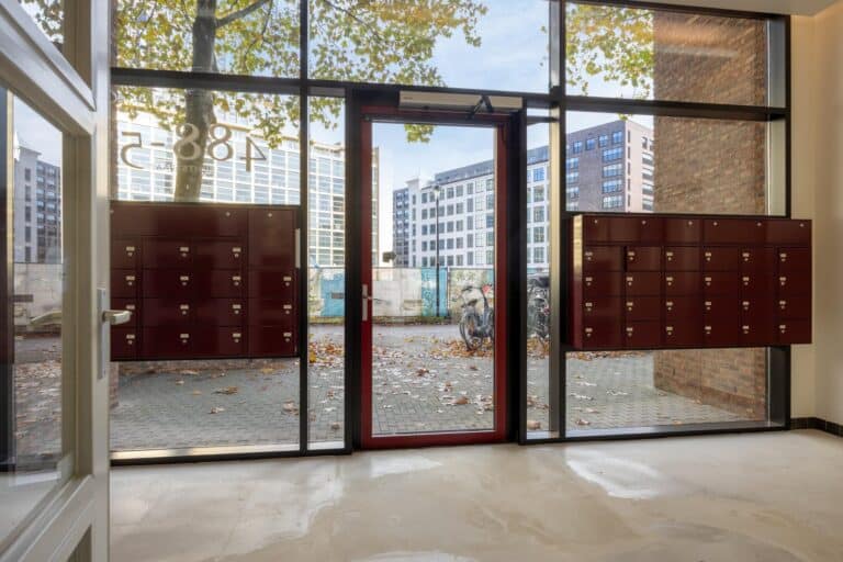 Central entrance with ring tableau, elevator, staircase and an electric dooropener with an intercom installation.