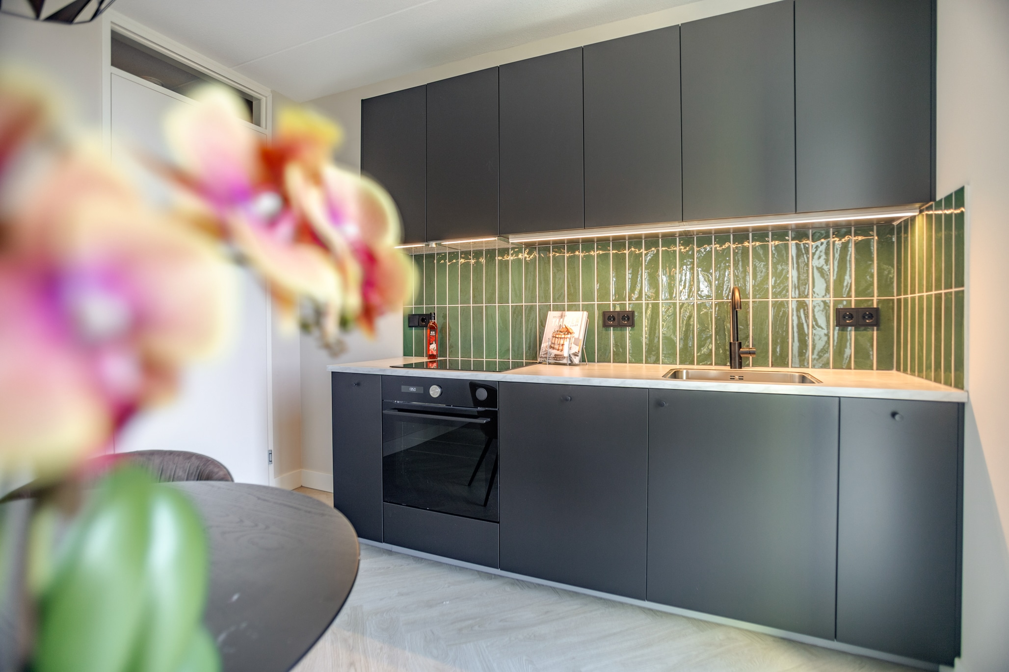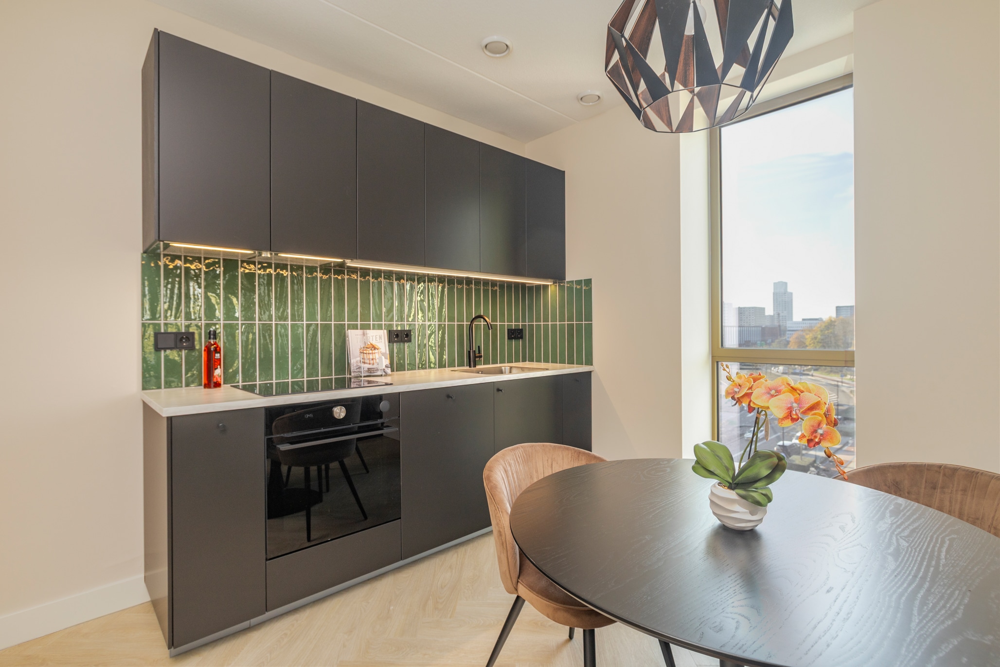 On your left, the brand-new kitchen awaits. Complete with induction hob, combi-oven, and dishwasher. Sleek, stylish, and practical – now all you need to decide is what’s cooking on day one.