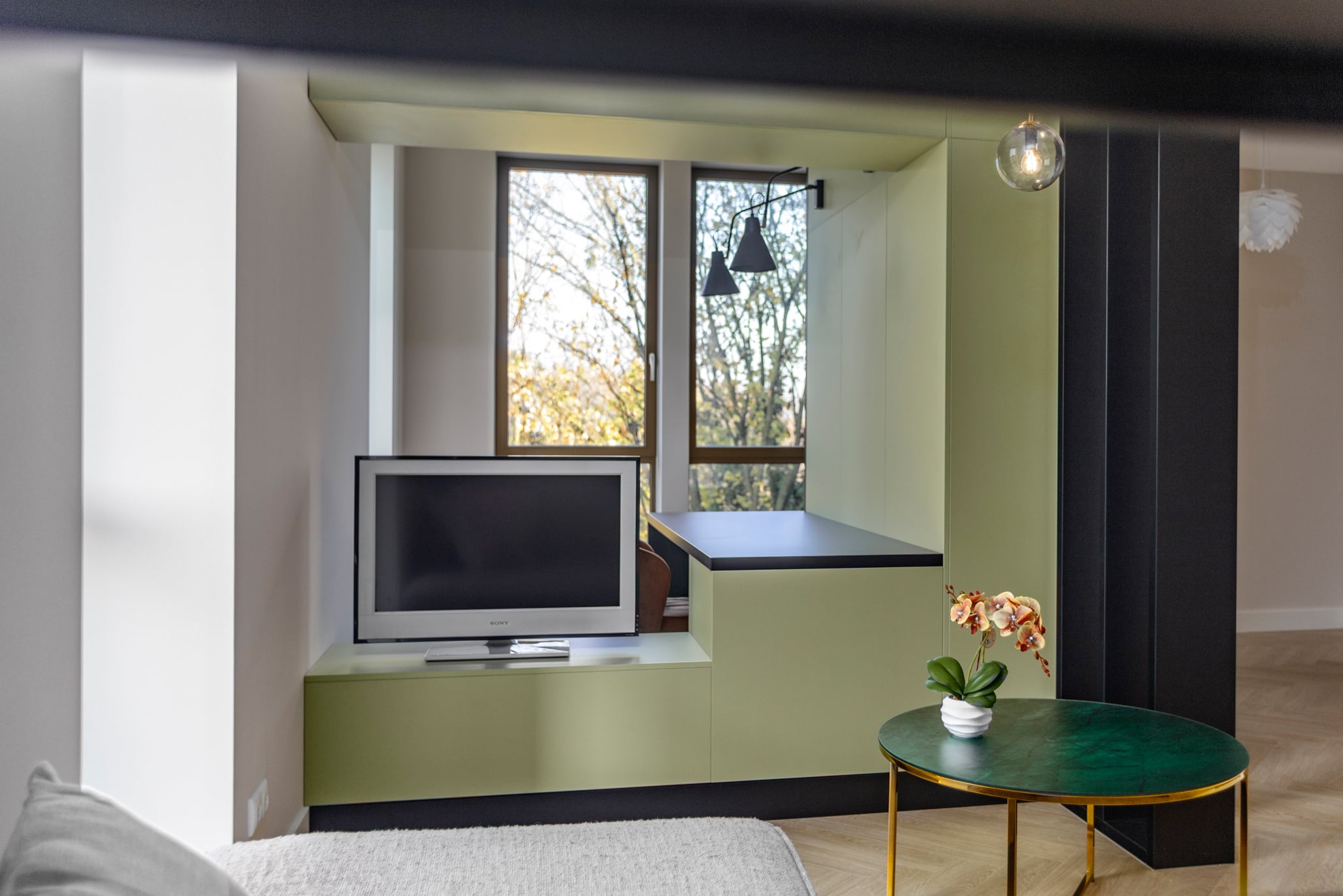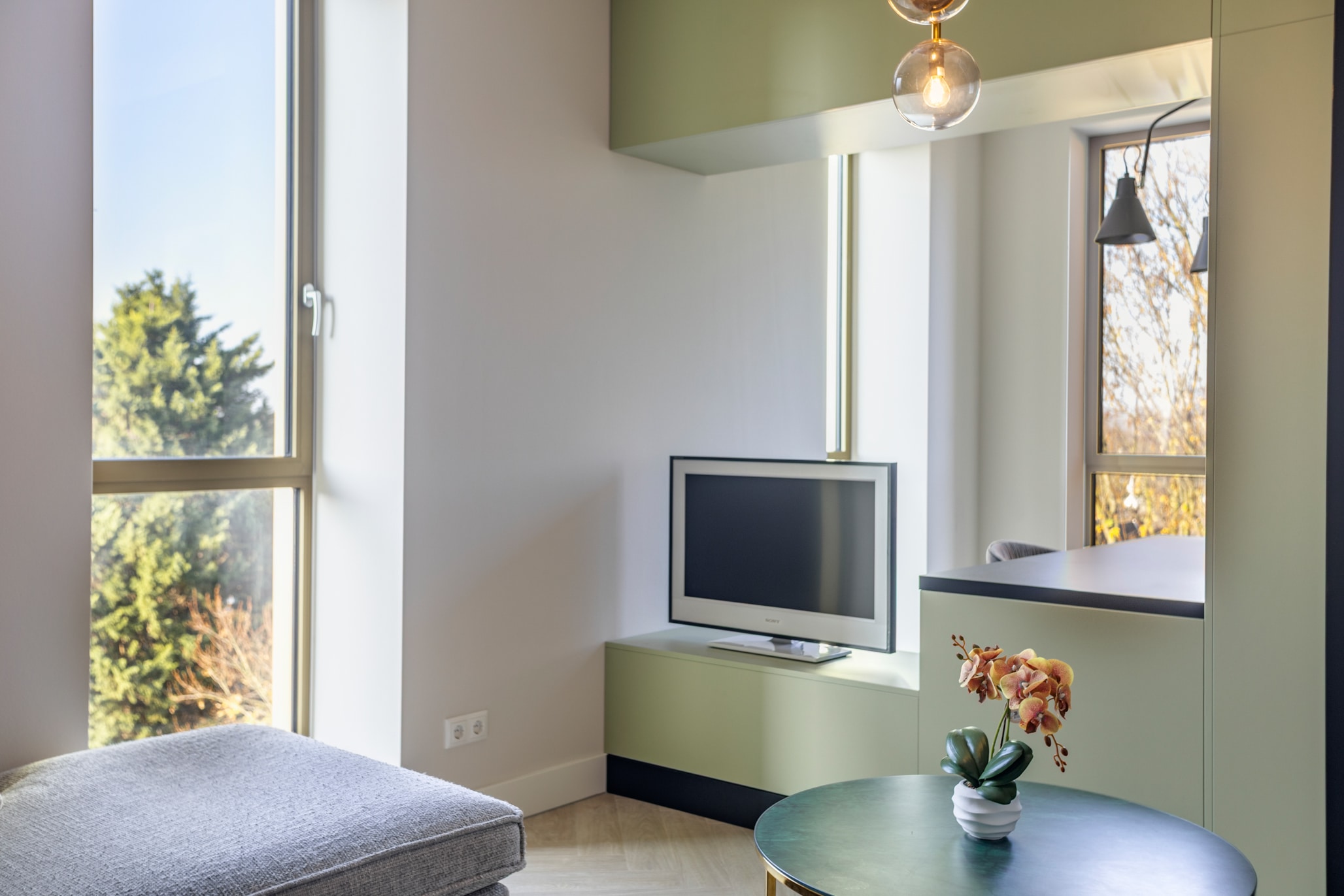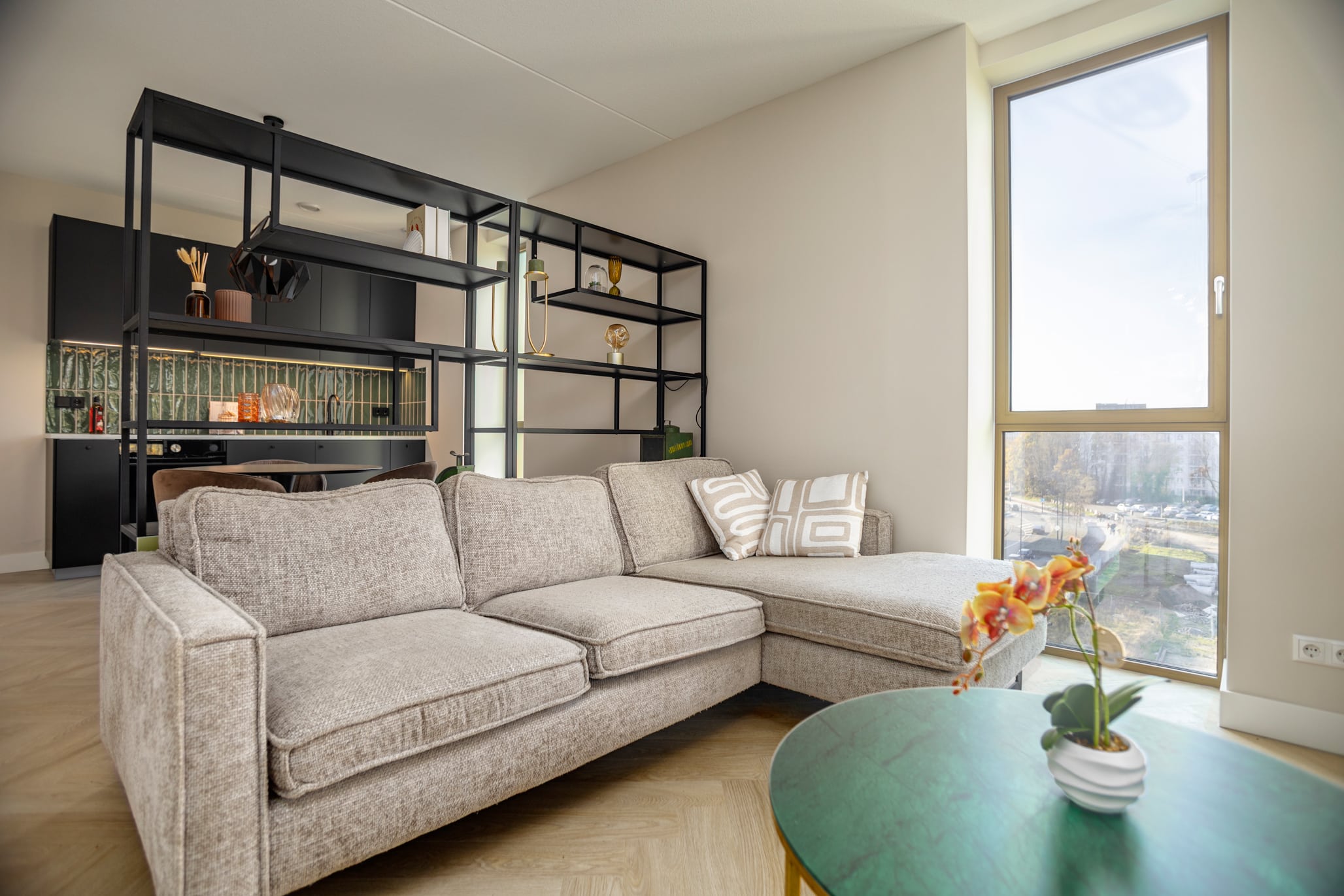 Step into the living room and you’ll feel it immediately: this space glows. Thanks to those extra-large windows, the room is flooded with daylight.