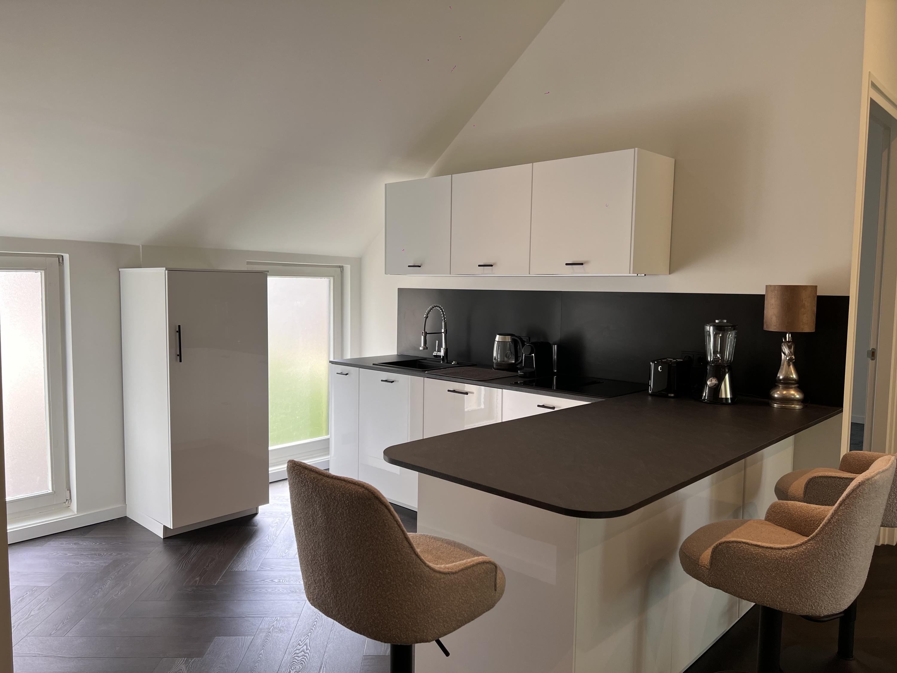 Upon entering, you immediately experience the modern character of the home. The apartment features a spacious living room with a modern open kitchen, offering plenty of space for a comfortable seating and dining area.