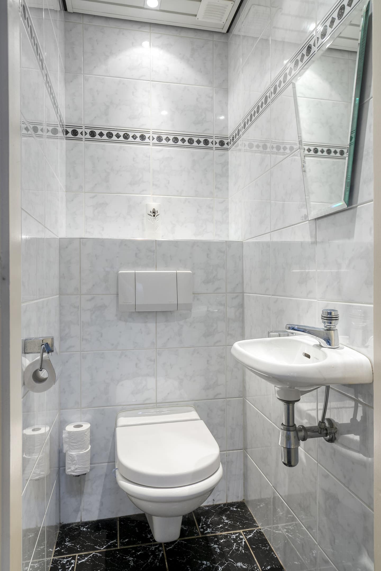 The central bathroom is equipped with a shower, toilet, and washbasin.