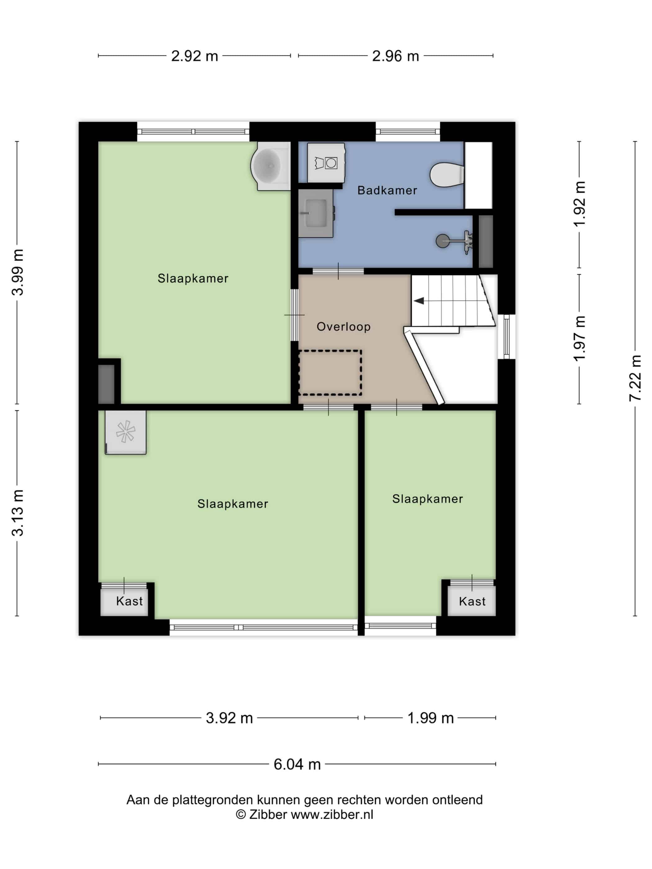 Bedroom 3 (front right): equally suitable as a sleeping or working space.