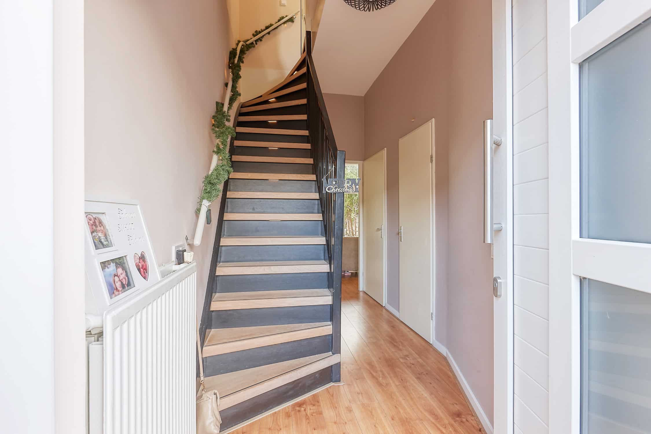 Upon entering, you immediately experience the pleasant and playful layout of the house. The ground floor has a living room with large windows and sliding doors that provide direct access to the sunny south-west facing back garden. Thanks to this location, you can enjoy the sun until the evening, an ideal place to relax or enjoy a cosy dinner. The open kitchen connects seamlessly to the living room and is practically designed, with direct access to the storage room. There is also a separate toilet on the ground floor, which adds to the comfort of the home.