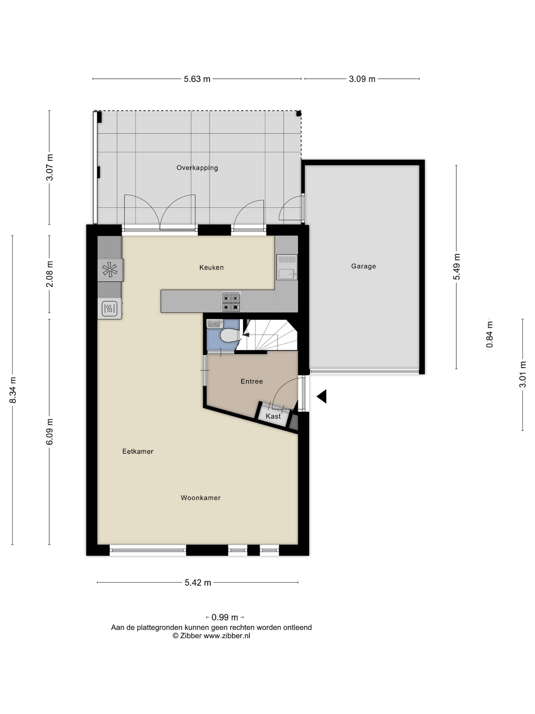 Vanuit de oprit kunt u middels de voordeur de hal van de woning bereiken, van waaruit u toegang hebt tot de woonkamer, het toilet en de trapopgang tot de hogere verdiepingen.