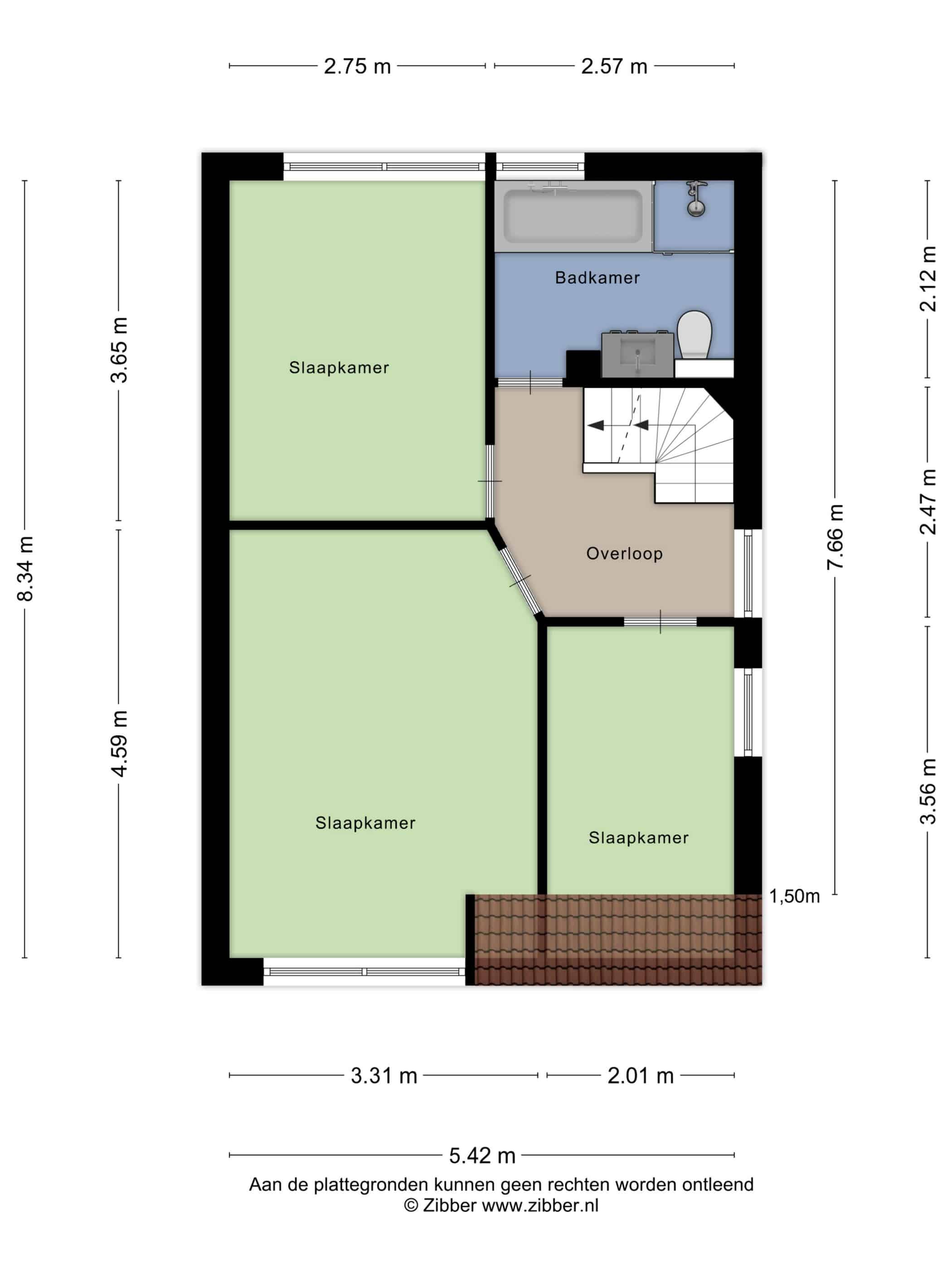 Vanuit de overloop kunt u een drietal slaapkamers bereiken waarvan er twee aan de voorzijde zijn gelegen, waaronder de ouderslaapkamer. De badkamer samen met één slaapkamer treft u aan de achterzijde van het woonhuis, en de gehele verdieping is uitgerust met een neutrale PVC vloer en kunststof raamkozijnen. Ook wordt deze gehele verdieping gekoeld door een airco installatie die zich in het trappengat naar de 2e verdieping bevindt.