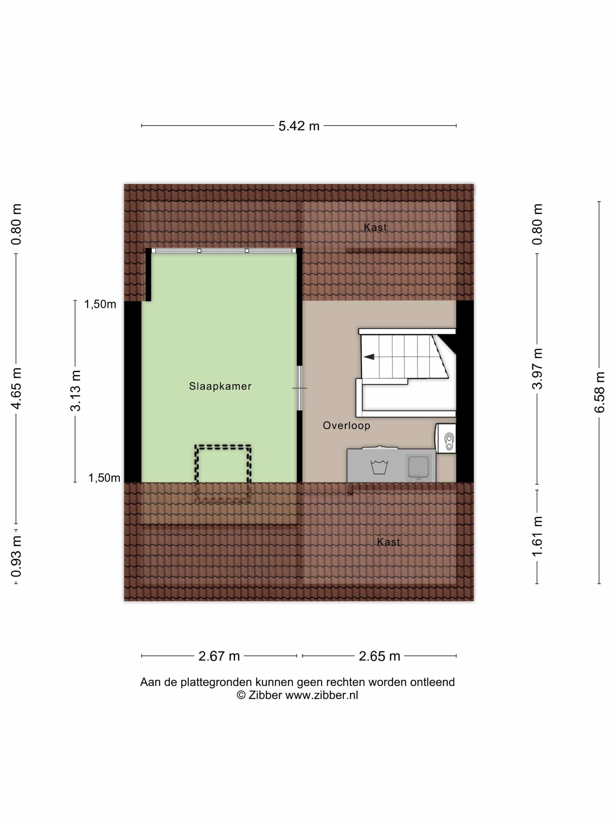 Landing to the front attic space (voorzolder) where the central-heating system is located, along with the washing-machine connection. There is storage space on both sides of this area. Adjacent is a spacious attic room, perfect as a bedroom or home office. It has windows on both sides and a pleasant dormer on the west side.