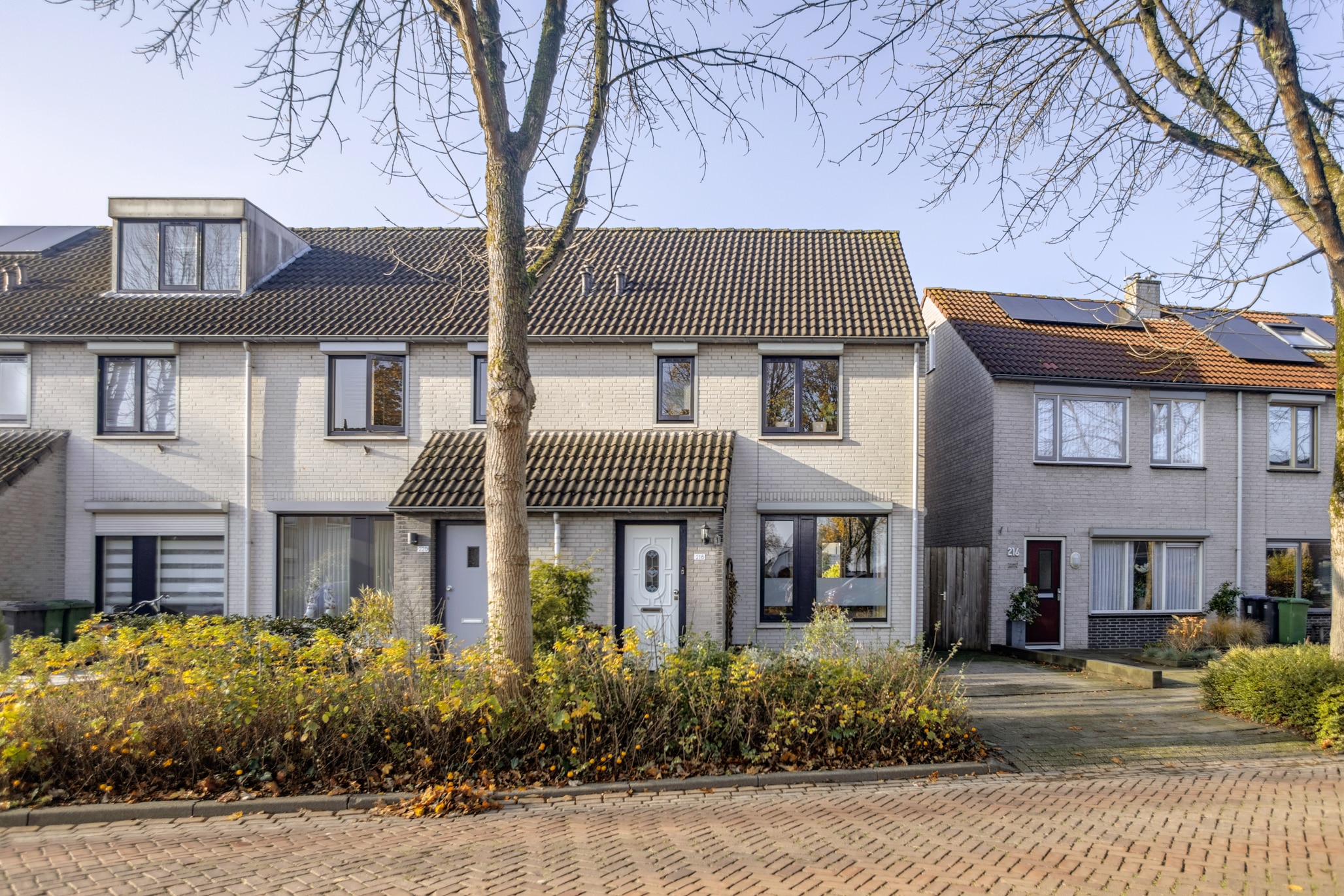 The house has a front garden with its own driveway, as well as a gate to the garden at the front and a gate to the fire lane at the rear. There's also a covered area facing the gate to the fire lane, ideal for storing your bike in a dry and sheltered spot. This makes everything easily accessible, while the garden remains optimally practical. The west-facing garden allows you to fully enjoy the afternoon and evening sun. In the garden, you'll find a shed with electricity, perfect for bicycles, garden furniture, or as a mini workshop.