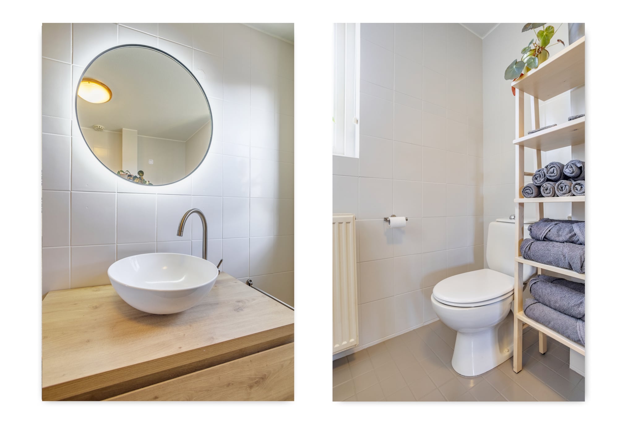 The stairs lead to the landing, where you have access to three spacious bedrooms. The rooms are bright and practically laid out. The bathroom is fresh and modern and features a bathtub with shower combination, a sink with LED mirror, and a second toilet – perfect for a busy family.