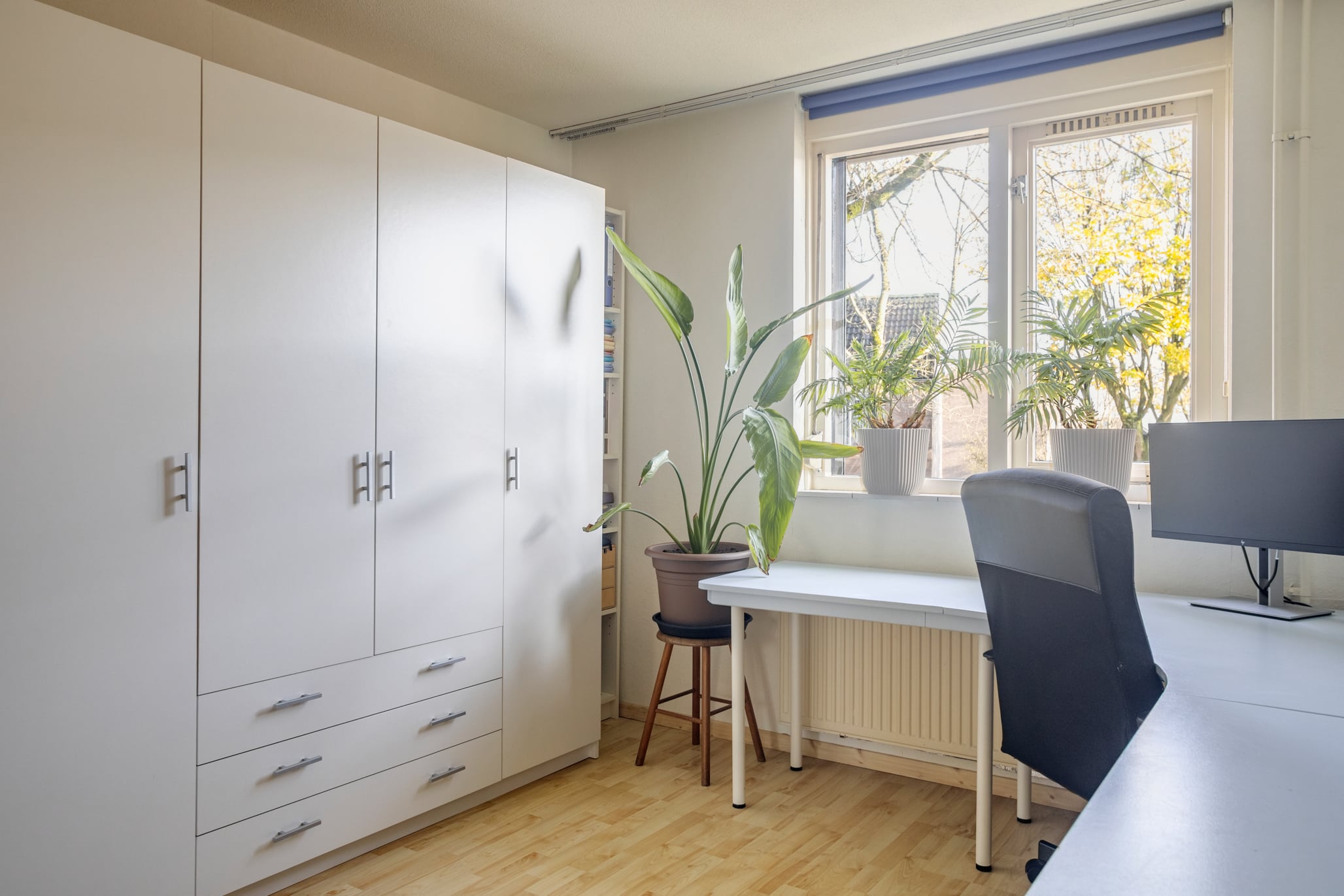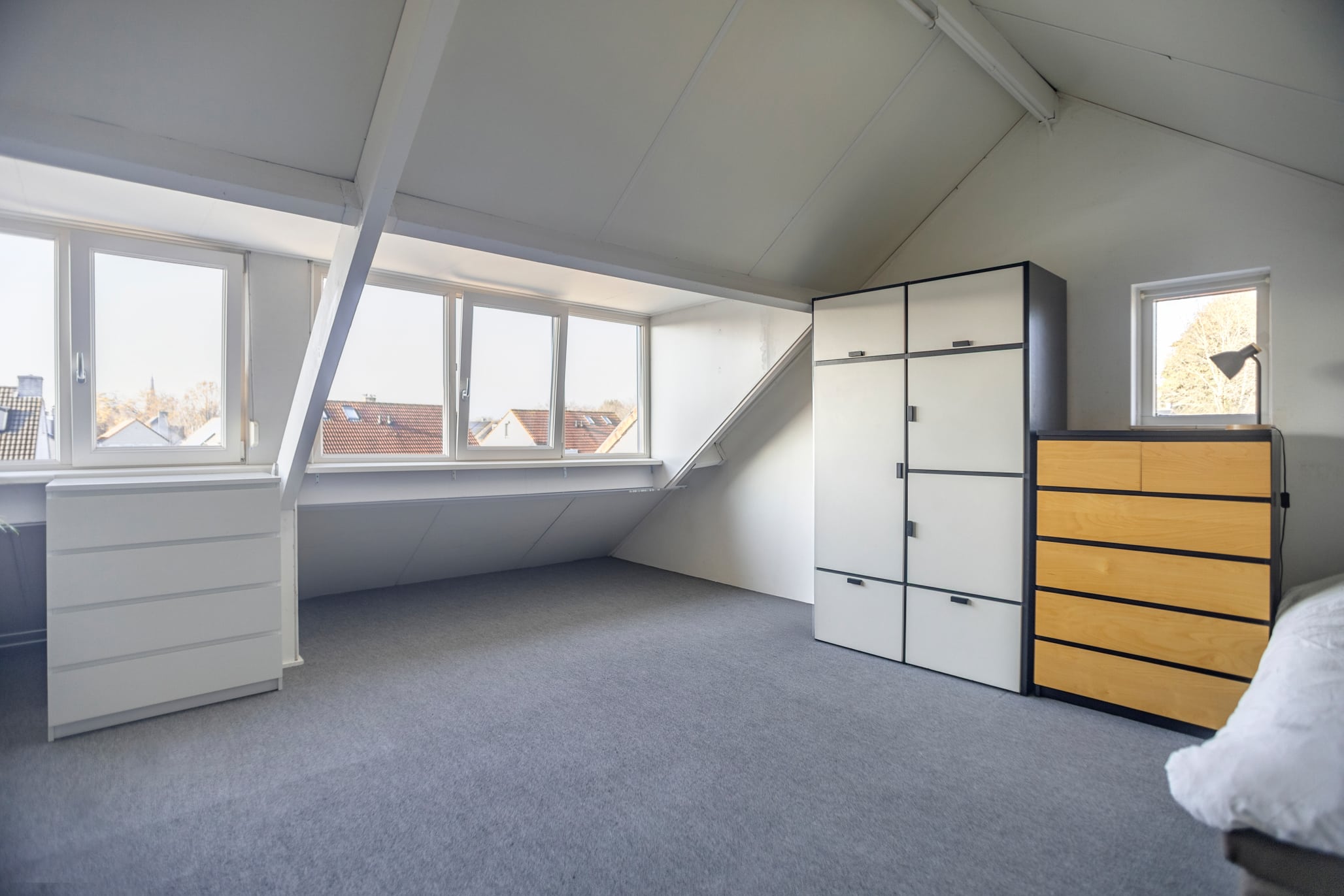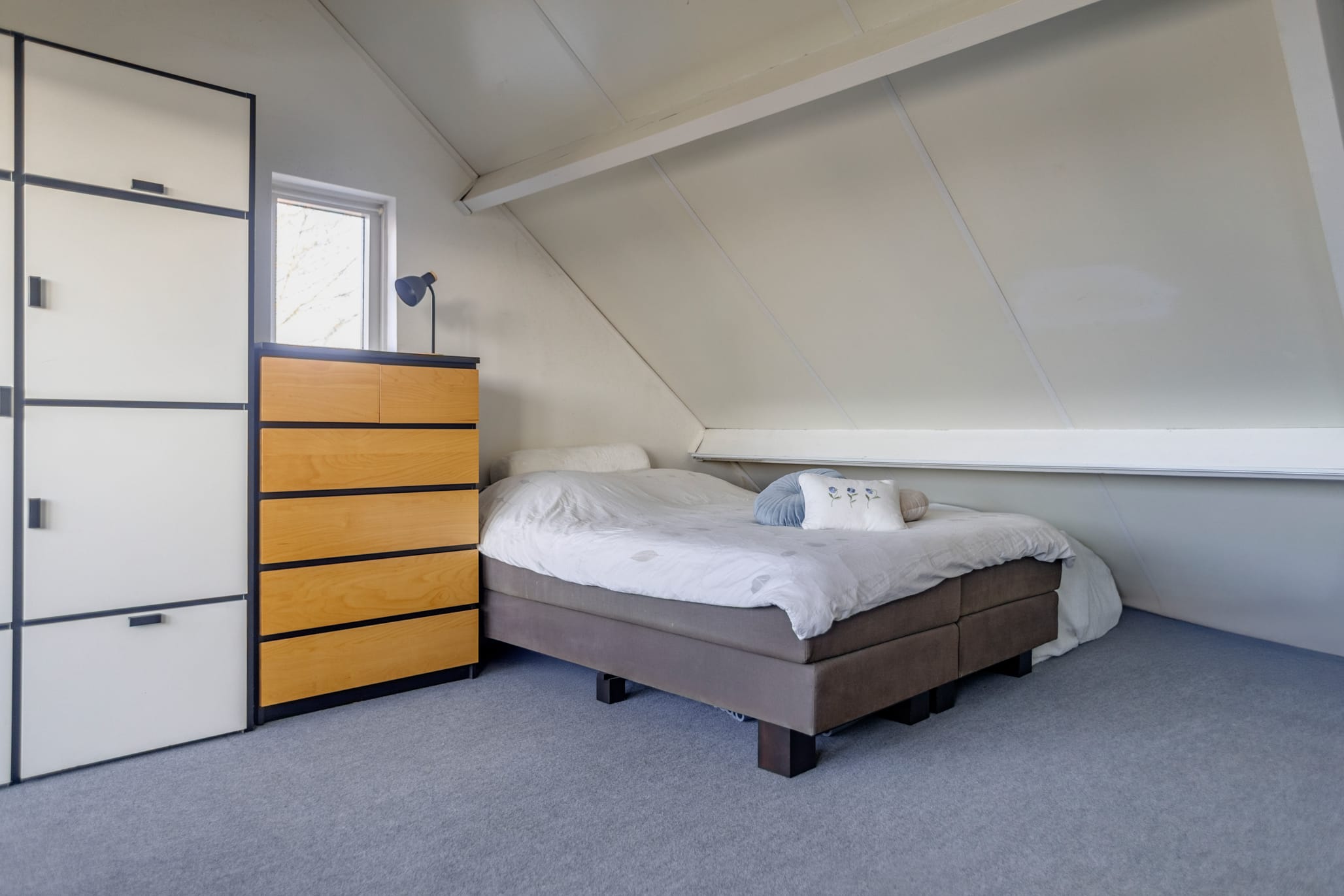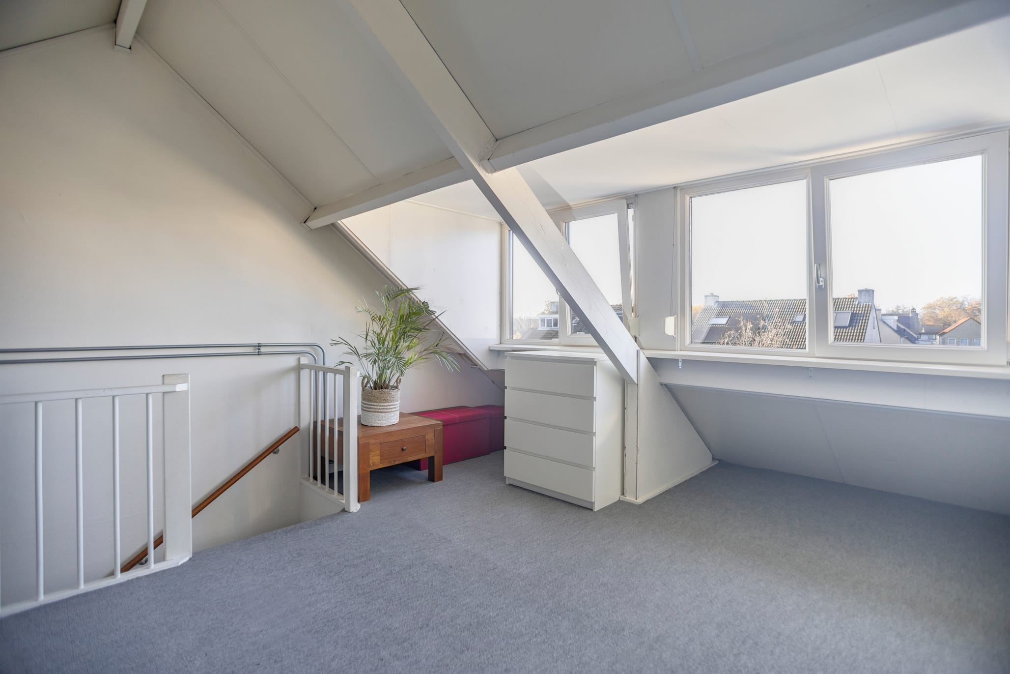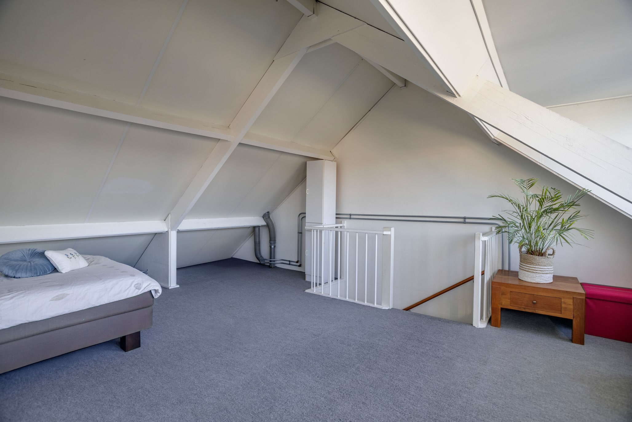 The attic is a fully-fledged attic room (height 2.16 m) with plenty of possibilities. A workspace? An extra bedroom? A hobby room? Anything is possible here. Thanks to the large dormer window spanning the entire width, there's ample headroom, plenty of natural light, and a sense of space. The dormer window is prepared for a potential partition wall, making it easy to create an additional room. There's also plenty of storage space in the attic.