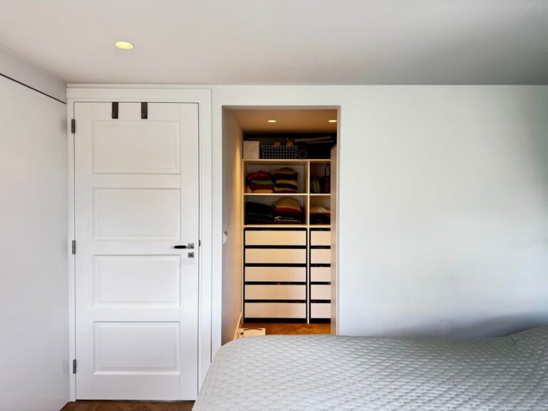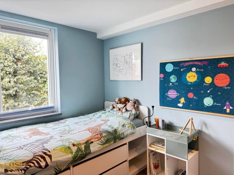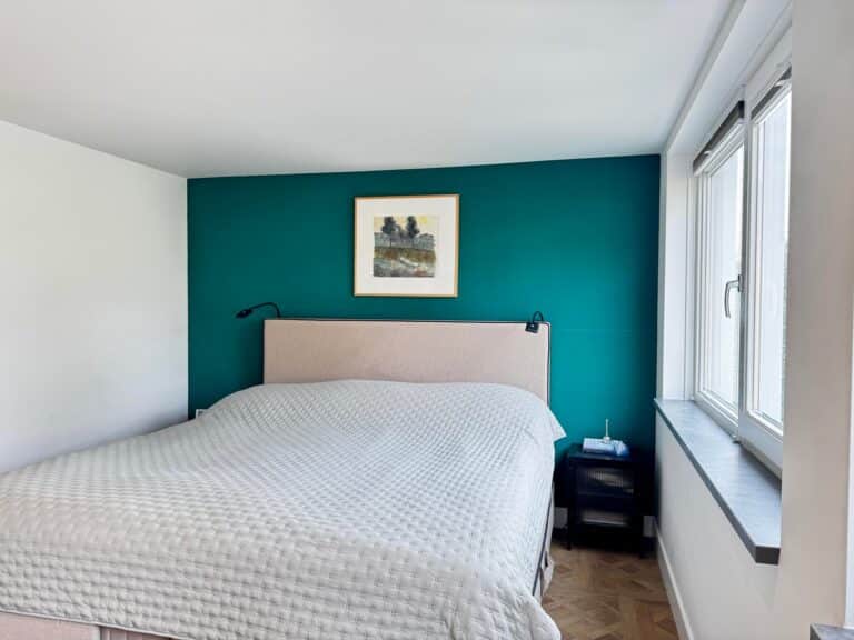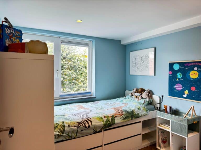 1 ruime slaapkamer aan de voorzijde. Separaat toilet. Aan de achterzijde de masterbedroom, deze heeft en suite de badkamer en een ruime inloopkast. Op de bovenste etage is ook een krachtige airco aanwezig om het huis te koelen bij warme dagen.