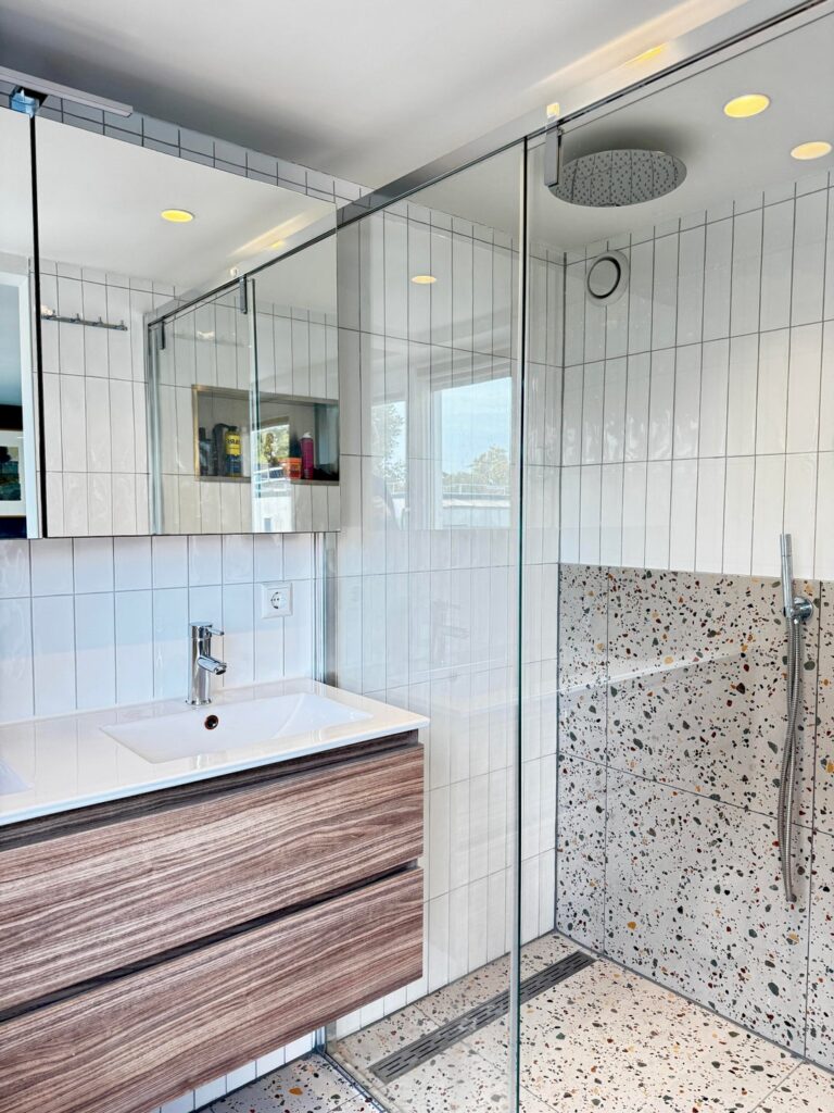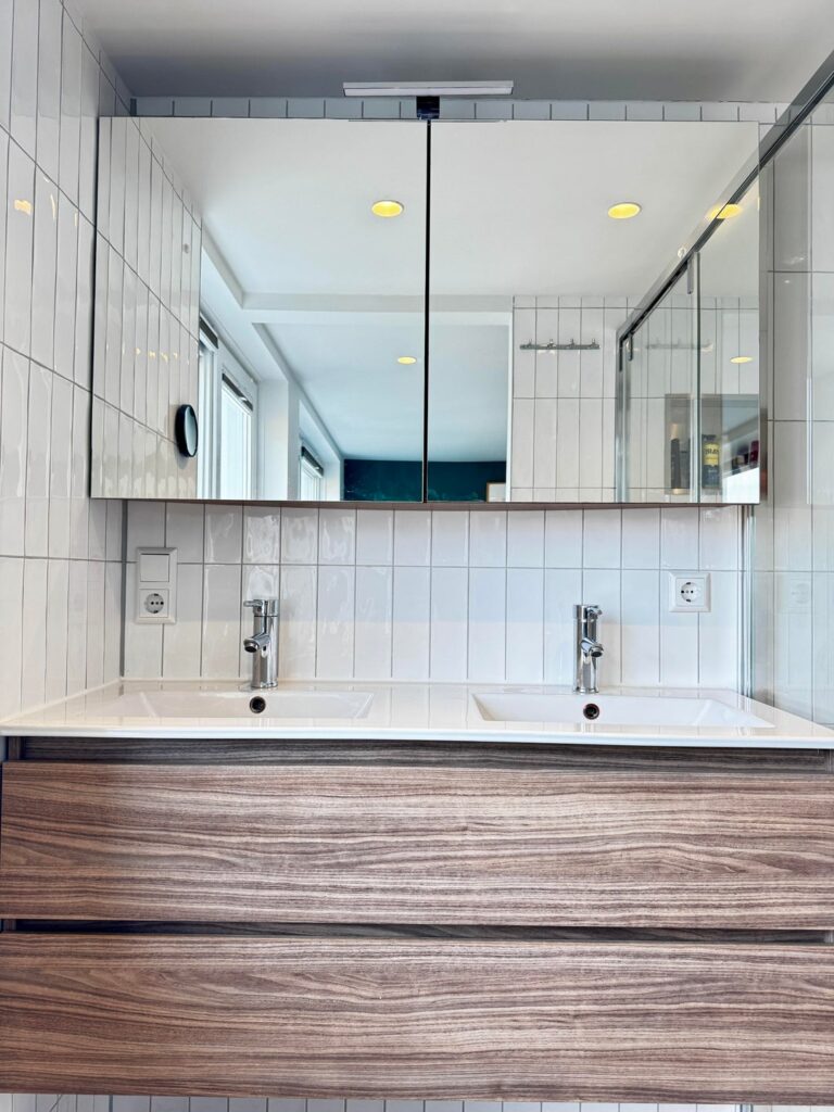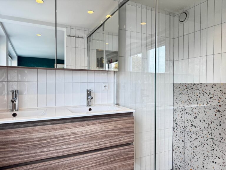 Op deze etage aan de overloop 3 slaapkamers, een studeerkamer, separaat toilet en badkamer met inloopdouche en dubbele wastafel.