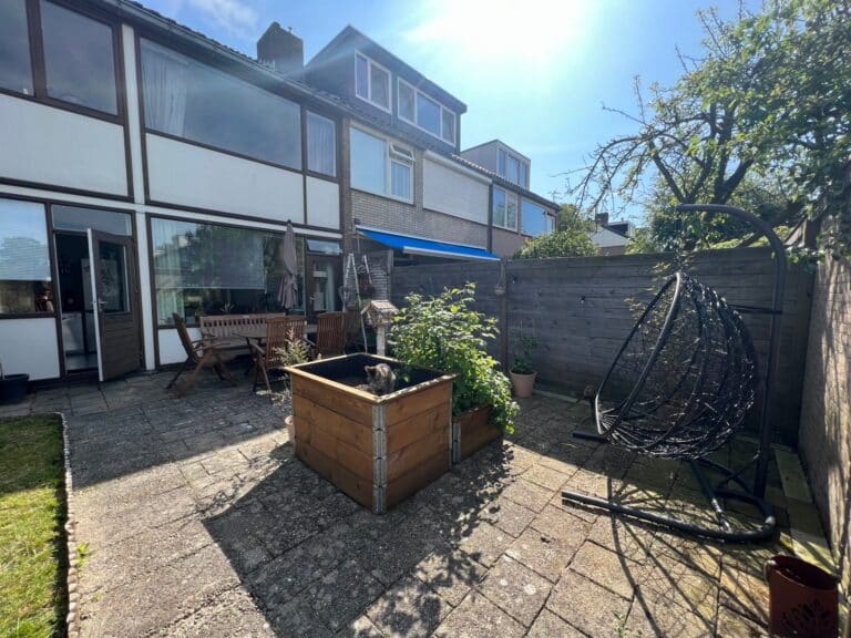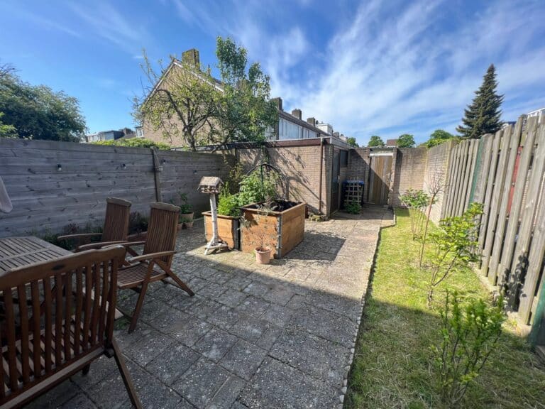 De tuin is voorzien van een achteringang en een schuur van circa 8m2.