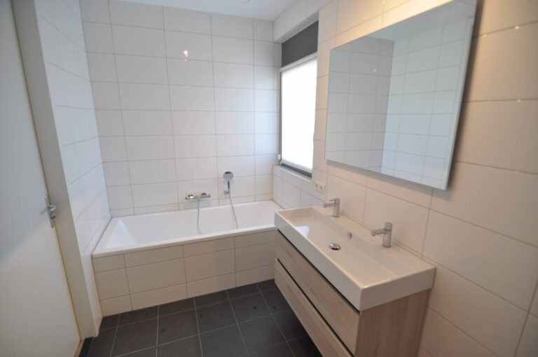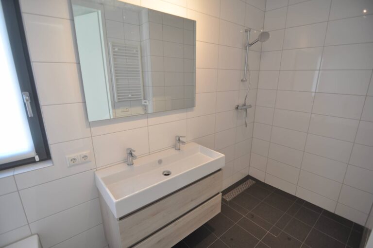 Daarnaast treft u tussen de slaapkamers de badkamer, welke op zijn beurt beschikt over een ligbad, inloopdouche en wastafel met ombouw. Op de overloop bevindt zich een aparte ruimte met aansluiting voor wasmachine en/of droger en het separate toilet.