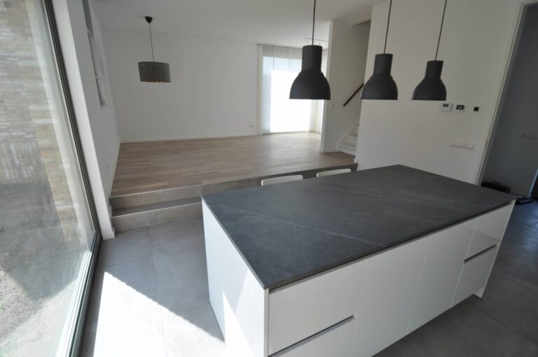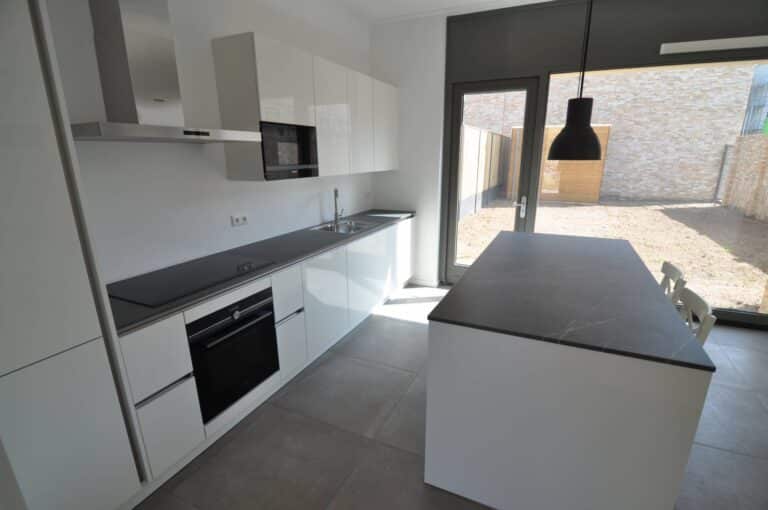 De ruime woonkamer die voorzien is van vloerverwarming en een riante open keuken met alle gewenste inbouw apparatuur, waaronder een vaatwasser, koelkast met vriezer, magnetron-oven combinatie en 4 pits inductie kookplaat. Ook is er een speels eiland gecreรซerd.