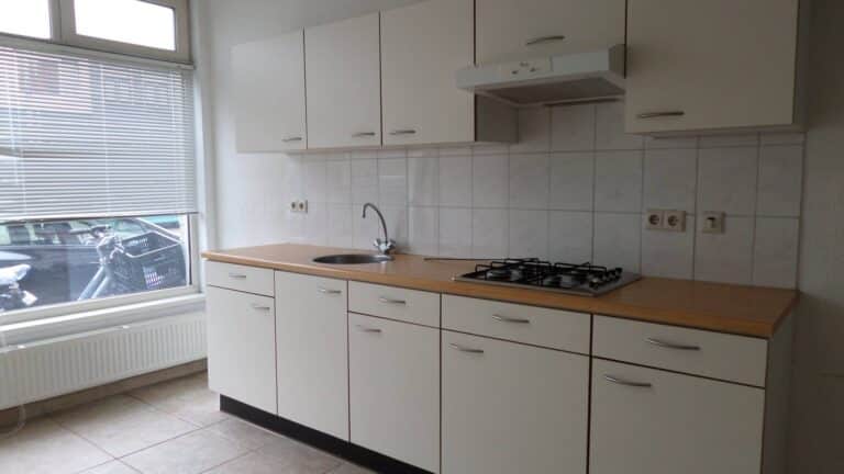 De eetkeuken aan de voorzijde is ca. 13,5 mยฒ en bevat een kookplaat, afzuigkap en trapkast.