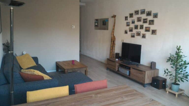 Het appartement is ca. 60 mยฒ en is speels verdeeld over 3 ruimtes.