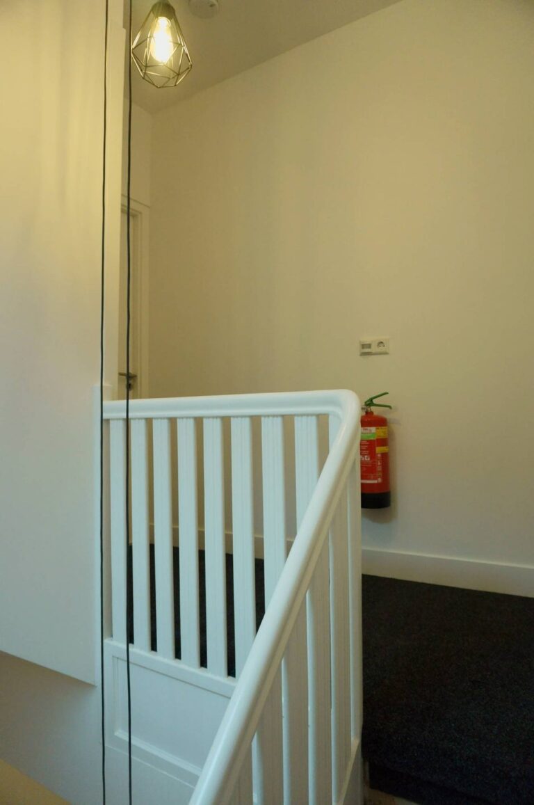 Indeling Bijzonder mooi pand met 7 appartementen. Fraaie entree met klassiek trappenhuis. Trapopgang naar de 2de etage. Entree appartement. Garderobe met video intercom. Ruime woonkamer, fraai ingericht en afgewerkt met zicht op het dakterras en de binnentuin. Open keuken voorzien van vaatwasser, inbouw oven, koelkast met vriezer, keramische kookplaat en afzuigkap. Aparte slaapkamer. Badkamer met wastafel, wasmachine en fraaie douche cabine. Apart toilet.