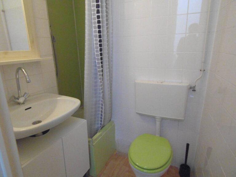 U betreedt de studio op de 1e verdieping in de slaapkamer, verder vindt u in deze ruimte de badkamer welke is voorzien van een douche, wastafel en toilet. Via een trap kunt u de tweede verdieping bereiken waar u de woonkamer met open keukenblok vindt. De keuken is voorzien van een koelkast, magnetron, gaskookplaat en afzuigkap.