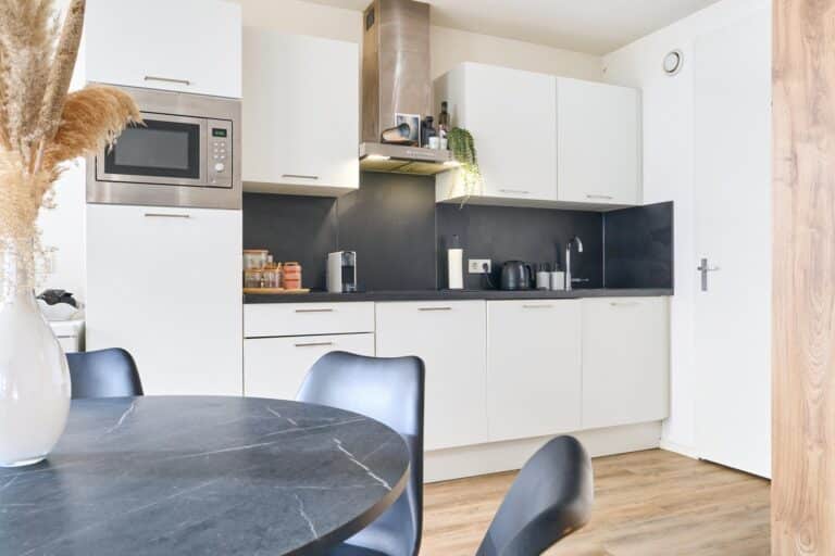 Deze lichte keuken met luxe aanrechtblad is elegant en modern, en bovenal hyperefficiënt vormgegeven. Er is een afwasmachine, een inductieplaat, een afzuigkap, een combi oven/magnetron en een spoelbak. De keuken is recent geplaatst en dus helemaal nieuw!