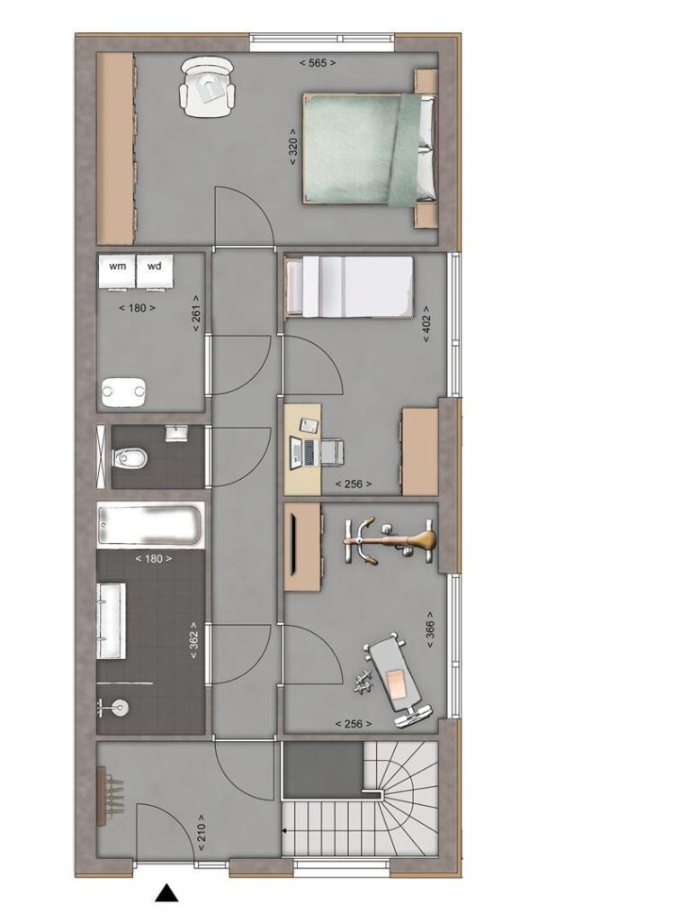 Breed opgezette verdieping waar u vanuit de hal een 3-tal slaapkamers, de badkamer, een toilet, en een berging kunt bereiken.