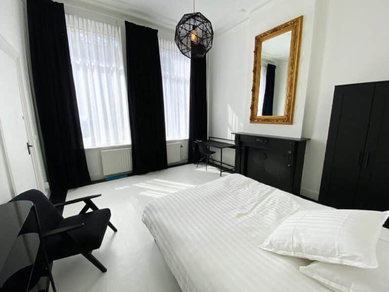 Kamer op de begane grond van een studentenhuis. De kamer is semi gemeubileerd.Er is een grote gezamelijke keuken op de begane grond en zo ook een tuin voor gezamelijk gebruik. Op elke etage is er een toilet en een douche. Deze worden gedeeld door 2 of 3 personen.