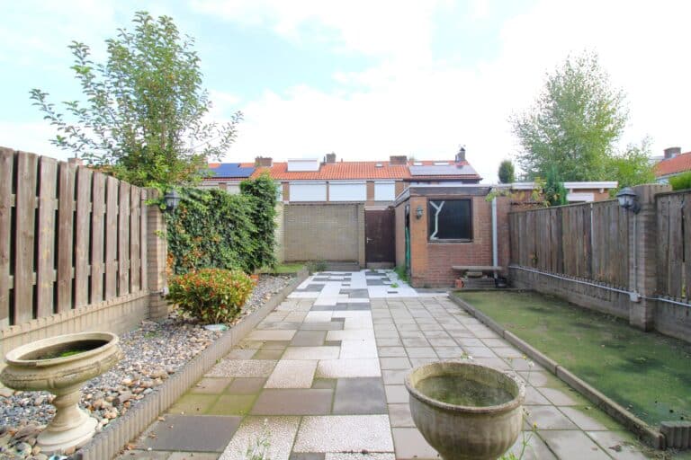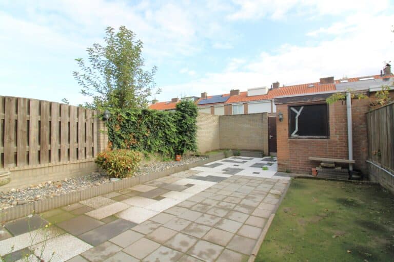 Onderhoudsvriendelijke tuin gericht tot het oosten, beschikkende over een berging van ca. 6m2. Er is een achterom naar het brandgangetje.