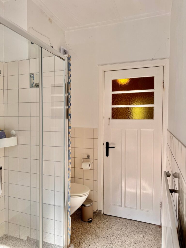 Fraaie overloop. Badkamer met toilet, wastafel, ligbad en douchecabine. 2 ruimte slaapkamers met inbouwkasten, 1 aan de voorzijde en 1 aan de achterzijde. 3e kamer aan de voorzijde, ideaal als werkruimte.