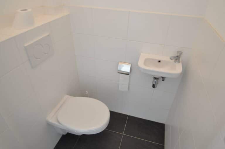 De badkamer is luxe afgewerkt en voorzien van een dubbele wastafel met ombouw, een modern toilet en een ruime inloopdouche. Dit maakt de badkamer niet alleen functioneel, maar ook een plaats waar je kunt ontspannen.