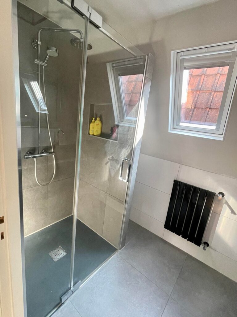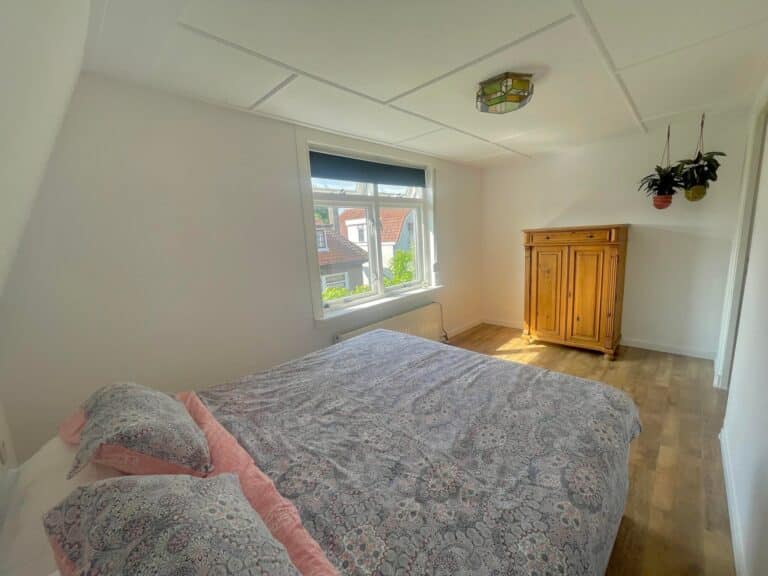 Eerste verdieping: Ruime overloop met vaste kastruimte. Twee royale slaapkamers met ieder een twee persoonsbed en kastruimte. Badkamer (2020) met royale douche en wastafelmeubel.