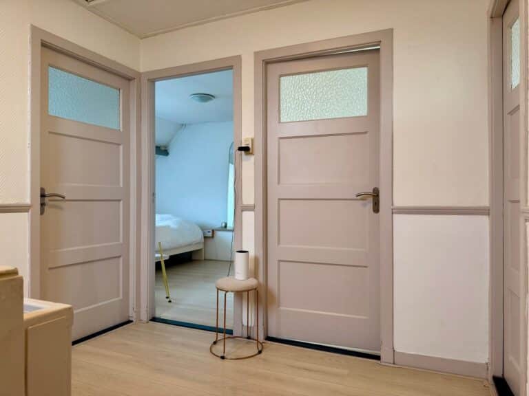 Overloop met toegang tot 3 ruime slaapkamers (ca. 12, 11 en 9 mยฒ). De kamers zijn alle drie voorzien van een dakkapel, twee kamers hebben een vaste kast.