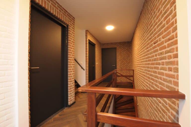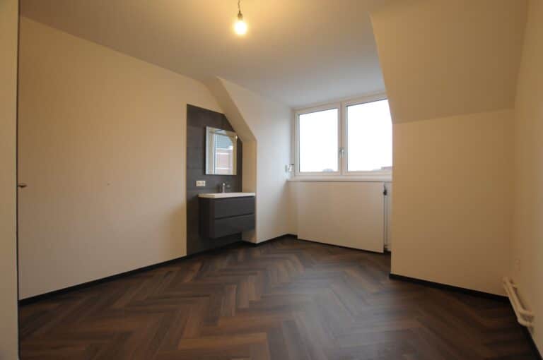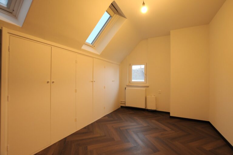Ruime verdieping beschikkende over een 3-tal slaapkamers waarvan de ouderslaapkamer aan de achterzijde gelegen is. Meerdere kamers zijn uitgerust met schotten voor bergruimte.