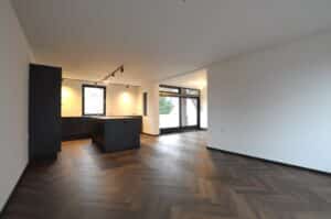 Zeer ruime woonkamer in L-opstelling van waaruit u de toegang hebt tot het balkon middels een schuifpui. Tussen het leef en eet gedeelte treft u de zeer royale keuken, beschikkende over alle gewenste inbouwapparatuur waaronder een magnetron-oven combinatie, koelkast, vriezer, 4-pits inductiekookplaat met geintegreerd afzuigsysteem, lavabo met quooker systeem voor direct kokend water, en een vaatwasser uiteraard.