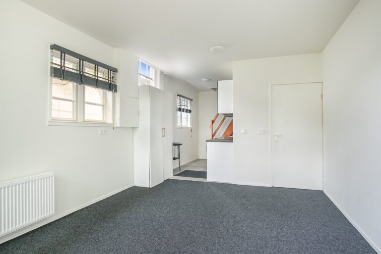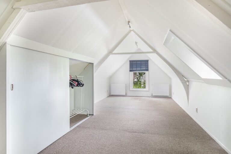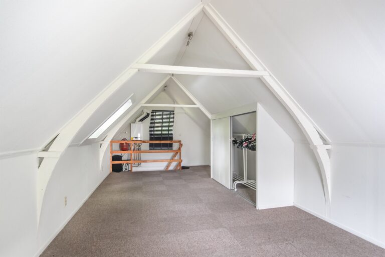 Op de eerste verdieping van het pand vindt u een ruime etage welke gebruikt kan worden als slaapkamer. De handige kast tegen de schuine wand maakt dat er niet direct een noodzaak is om een grote kledingkast te plaatsen, maar de inrichting laten wij graag aan de huurders.