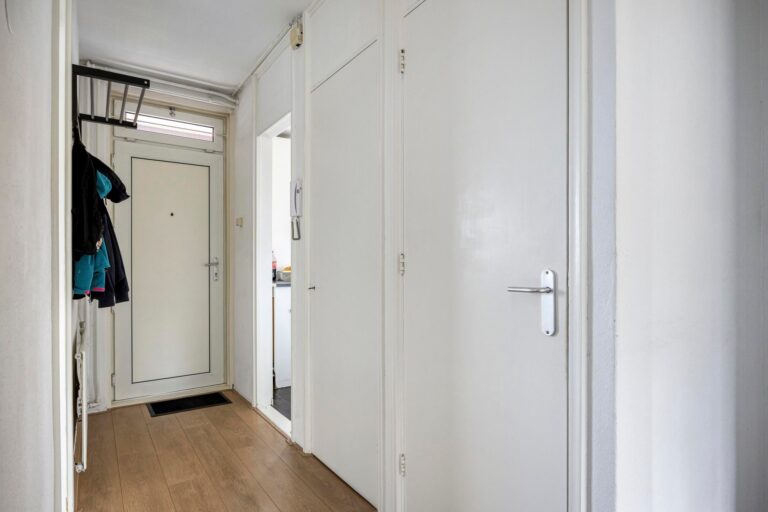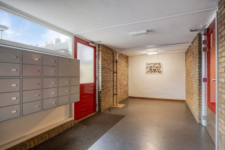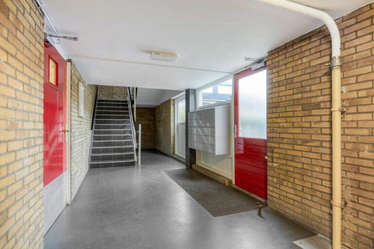 Via de centrale entree met bellen- en brievenbussenplateau vindt u de voordeur van het appartement op de eerste verdieping van het complex, te bereiken via een centraal trappenhuis. Let op: er is geen lift aanwezig in dit complex.