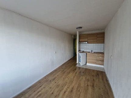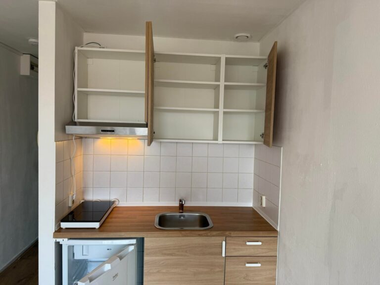 Middels een gezamenlijk toegang is de studio te bereiken. De studio is totaal circa 20 m2 en heeft een eigen keuken en badkamer. De keuken is voorzien van een koelkast en een 2-pits inductie kookplaat.