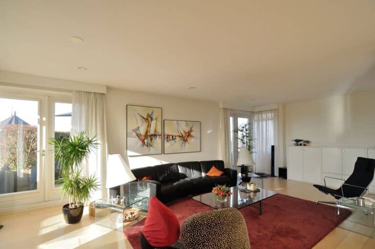 Indeling: Hal-/entree met videofoon, meterkast, apart (zwevend) toilet, een inpandige berging met HR combiketel, wasmachine en droger, riante living van ca. 81mยฒ met openslaande deuren naar het royale dakterras van ruim 40m2 en een loopdeur naar dakterras 2, keuken van ca. 15m2 voorzien van alle apparatuur en middels loopdeur toegang tot terras 3 (ca.7mยฒ), twee slaapkamers van ca. 8 en 16m2 en een badkamer met wastafel en douche.