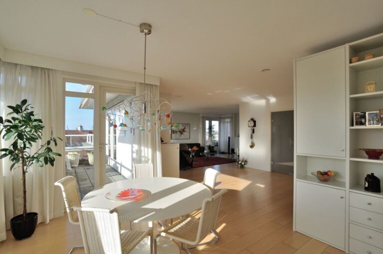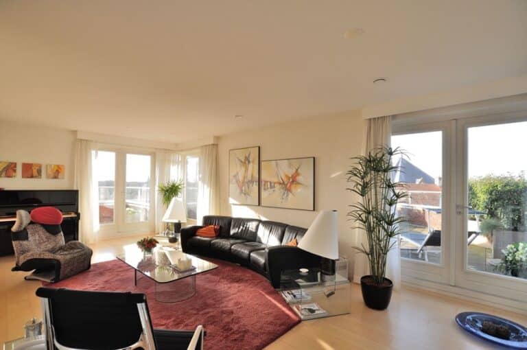 Goed afgewerkt 3-kamer appartement, type penthouse, op uitstekende locatie gelegen op de vijfde woonlaag (bovenste woonlaag), met 3 zonneterrassen en een parkeerplaats in de parkeerkelder.