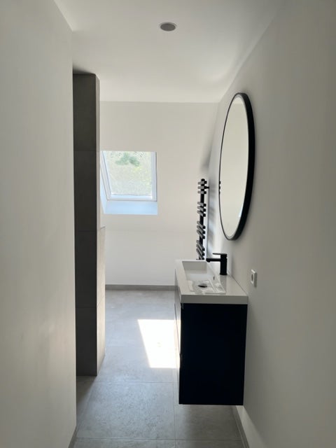 Tweede verdieping: twee slaapkamers van ca. 20m2 en 16m2, een nieuwe badkamer met inloopdouche, dubbele wastafel en tweede toilet en een aparte ruimte met opstelling cv-ketel en aansluiting wasmachine en droger.