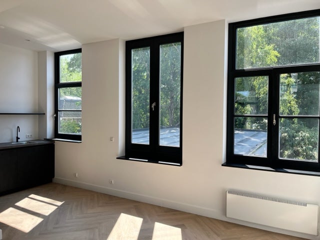 Eerste verdieping: Woonkamer van ca. 40m2, een nieuwe open keuken van ca. 6m2, een heerlijke werkkamer ca. 6m2 aan de voorzijde en een apart toilet.