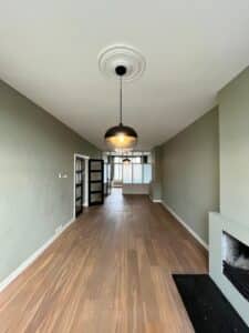 - Riante woonkamer (ca. 10 m) met schouw en doorgang naar slaapkamer 3 aan de achterzijde