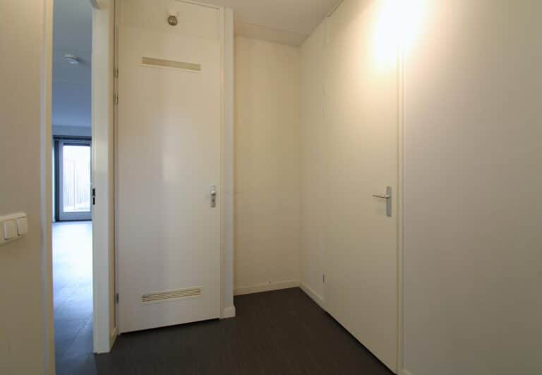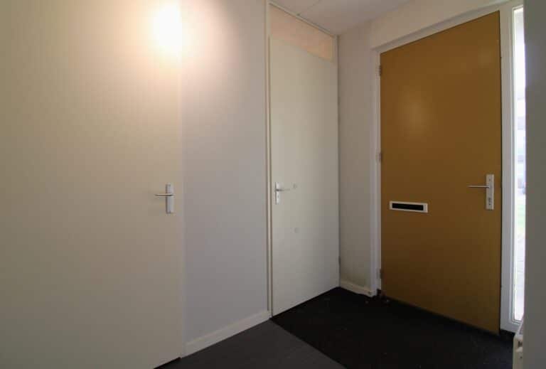 Entree middels de hal met meterkast, toilet, extra opbergruimte en garderobe met doorloop naar de woonkamer.