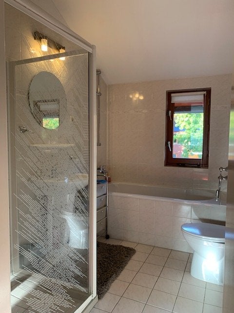 1e verdieping: overloop, keurige voorgelegen badkamer met ligbad, separate douche, toilet, vaste wastafel en design radiator, riante voorgelegen hoofdslaapkamer, middels tochtdeur toegang tot een 2e overloop, 2e slaapkamer aan de voorkant gelegen met wederom een verspringend plafond. De gehele 1e verdieping is voorzien van een laminaat vloer.